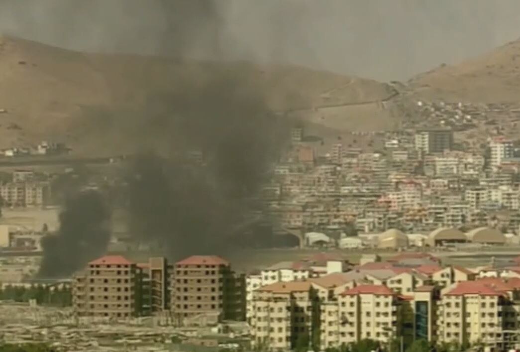Smoke rises from a deadly explosion outside the airport in Kabul Afghanistan Thursday Aug. Two suicide bombers and gunmen have targeted crowds massing near the Kabul airport in the waning days of a massive airlift that has drawn thousands of people seeking to flee the Taliban takeover of Afghanistan. The Pentagon confirms the explosion reports AP.